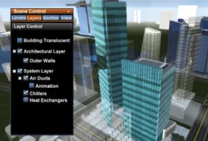 • Control current view through toggling visibility of building by level, architectural layer or system layer.