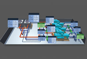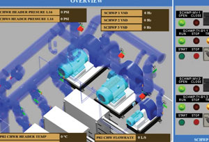 • Monitor the state of equipment such as cooling tower, pump, chiller through intuitive animation of cooling tower fans, pump fans and chiller fans.
