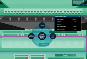 • Monitor status of asset such as server based on the color of highlight. For instance, green highlight represents that the server is on and running normally and red indicates fault.